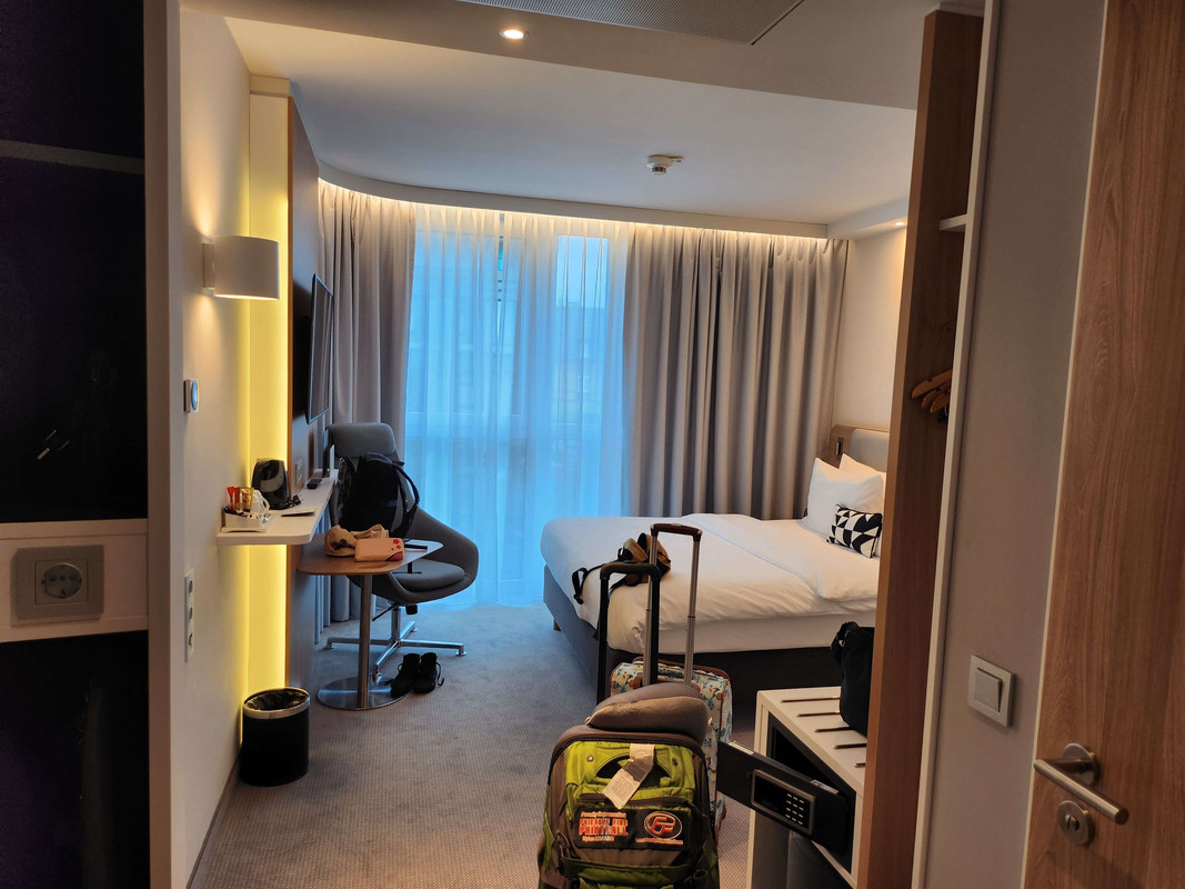 trains this time were muuuuuch more peaceful. no crazy transfers and dicey and dina were taking the same trains me kyle and red were on, so we parted just at the frankfurt main station before checking into our new hotel which was pretty nice for how cheap it was?