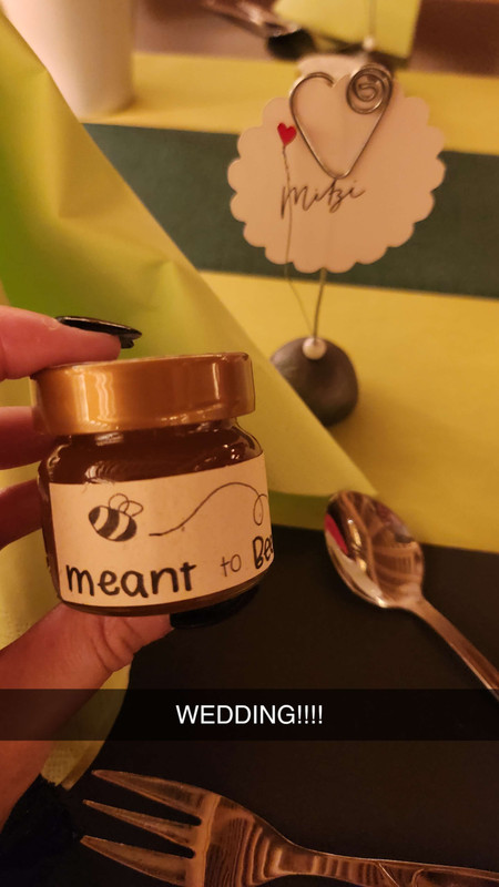 and then, of course, WEDDING!!! i was wearing silent moon by mmm, which was a big hit haha. i didn't take many pictures because i was too busy CRYING AND HOLDING KYLE during the speeches and stuff, oh my god i cannot tell you how excited i am for lena to be married. lucas is such a good guy, he's so kind and loves her so so much, it's everything she deserves and i love them. also she looked GORGEOUS in her dress. i was so happy. i helped her pick the dress i was there when she chose it!!! and it was the perfect dress she was the most beautiful ever. and we got honey!! and she had this cute dnd thing to encourage guests to talk to each other, i've included kyle's character sheet too.. i love him.