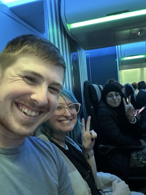 this pic red took is so purposefully awful on all accounts lmao. my hair was still wet from my shower and everything LOL. she's so cute somehow stepping off a 5.5 hour flight right onto a 7 hour one. incredible really. i love her so much. she read all of TB on the train, which was a delight (once we got wifi working....bc over the ocean it doesn't work so well....), and we played some silly pen and paper games together too. kyle mostly slept bc he's the smartest out of all of us.