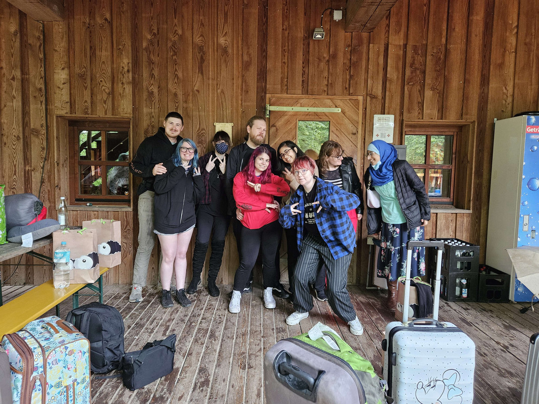 the wedding was also fun, wish someone warned me european weddings lasted 12+ hours tho? lmfao. but it was so fun. because it's lena, the music portion was the most fun - kyle led us off by doing karaoke to wonderwall which EVERYONE loved lmfao, and then dicey & dina did wannabe which. iconic. and then we ALL (me red dicey dina lili sapphy lena) did dear maria count me in & misery business before going to regular dancing like crazy. kyle wowed everyone with his dancing skills of course, and we had some great bangers in there.... including lena starting a mosh pit IN HER WEDDING DRESS during the metal cover of EVERY TIME WE TOUCH, literally most iconic thing i have ever seen in my entire life. and then near the later part of the night we got rocked w FOB's thnks fr th mmrs followed immediately after by THE BLACK PARADE. which... we all cried singing to together lmao like screaming at the top of our lungs. we formed a circle just us and it was. the most touching thing. i'm going to remember that for the rest of my life. i'm so happy we could make lena's most special day so memorable for her, too. i love these people with my whole heart. the capsule hotel was fun even if i didn't sleep until 4:45 and missed breakfast but OH WELL!