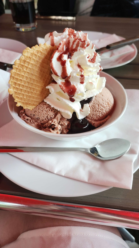 i passed out from like 9am-1pm by accident bc i didn't sleep a wink on the plane, got 4 hours of sleep the night before, and time change LOL. but then it was FRIENDSHIP TIME! we went to the natural science museum in frankfurt, which was so much fun we all had a blast, and then we walked for a hot minute to find a place with outdoor seating (one of our friends has a weaker immune system, so she didn't want to eat inside!), and found a nice italian-esque? place? anyways i had mediocre gnocchi but an AMAZING dessert of nutella ice cream w/ sour cherries.... soooooo good. this was the only day we'd really get with lena solo, since it was her wedding weekend LOL it was really nice she even made it out there for us on wednsday in the first place. we went on a fun long adventure with lili in search of a store to grab some toothpaste etc at since thursday was a bank holiday in germany. we were unsuccessful but it was still very fun tbh. overall just.... heart so full and warm. i love my friends inside my phone and now also outside my phone. seriously i cannot overstate how wonderful it was just to be around them all at the same time in person? like just the instant clicking and comfort and acceptance and love. i felt SO loved this entire week. i love them. i'm so happy to have done this.