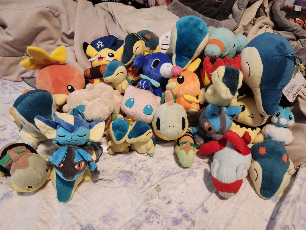 tuesday: return to normal life! this was mostly a laundry/cleaning day. i unpacked, of course, which meant i could put all my pokemon plush back in the suitcase i keep them in (tiny apartment, lmao). below are my favorites/most expensive, and also what things look like once they're in there LOL. i wonder if the pkmncollectors group on LJ is still going? a lot of my good cyndaquil/torchic finds are from there back in 2015.