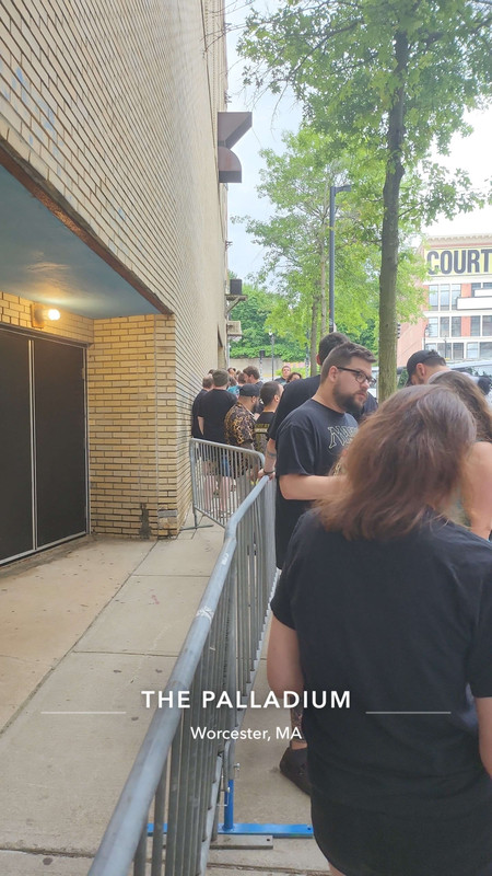 i love the palladium! i haven't been since i saw the legendary mtrench/the cab/ftsk/simple plan tour there MANNYYYY years ago, but it hadn't changed really at all lol. it's a very nice and cozy venue - i love smaller ones like this where i can get close that still allow crowd surfing etc LOL. it was eidola's eviscerate tour! i mainly bought tickets for wolf & bear, who was opening, along with royal coda. i didn't know the band at the start of the show, but i lost my mind during wolf & bear lol. absolutely adore me and they were having SUCH a blast on stage. one of the singers during the last song actually crowd surfed all the way out before getting pushed back to stage lol and it's moments like that i really missed from concerts. fuck you once more covid. i can't wait to go to many shows again like i used to with kyle! royal coda of course were fucking awesome, no surprise there. they are SO talented it's kinda crazy. kyle hadn't gotten a chance to listen to them yet and he was so into it lol. he moshed for a bit while i took a break from being on the floor since my knees were starting to hurt. eidola was ALSO so fucking good. they had such great stage energy, and i loved seeing all the crazy pit shenanigans LOL i haven't seen a wall of death since warped tour. what a fucking blast man. and of course, had to grab myself a w&b shirt finally-