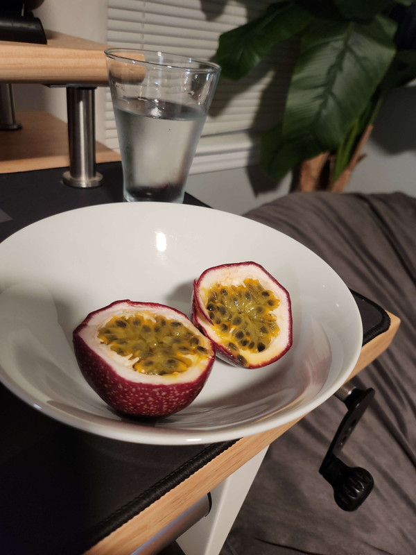 once will and kyle went to bed, i played zzz for a bit. tried to make myself happy by eating a passionfruit lmao: