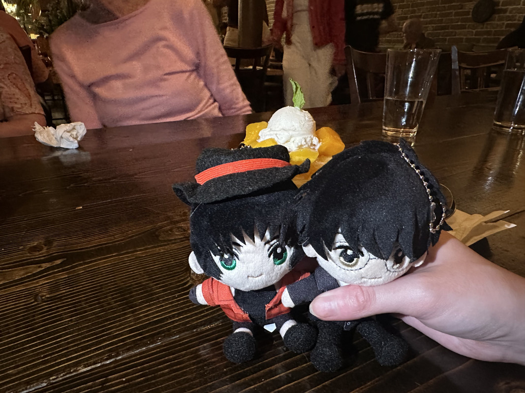 you may be wondering why there is such better lighting on my seisubs. it is bc i was not going to pull them out of my bag with his aunt and grandmother there, but kyle INSISTED, going "no you have to get out your little guys!!!!!" and then i did and my father in law was like "oh i'll put my flashlight on for better lighting" bc again, photo guy, and i was held at gunpoint to take a picture. which i did quickly. then kyle's aunt goes ".... is this a thing? do people do this?" and i tried to say that it was a thing and i wasn't the only person who did this, but then kyle had to make sure she knew it was a Specific Brand of Weeb thing and i was going to die lmfao. really though it was fun his aunt was REAL confused but she had the spirit (told me about a couple she saw on vacation in egypt that took a picture of them with this set of teddy bears in every place they went to).