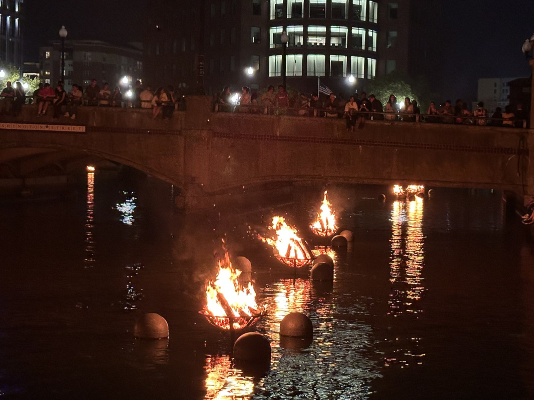 the actual waterfire thing was SO beautiful i was blown away. this kyle's aunt went home for, which i am secretly grateful for bc i DO like her i promise but she also stresses me out with the way she talks. lmao. anyways the thing was really really pretty and relaxing. i had chosen to wear my one singular pair of flats with my outfit which was a good choice bc i did not know RI had so much cobblestone LOL i should've tho. but yeah please look at this: