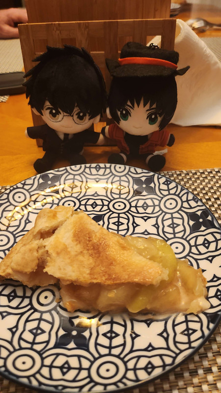 so we stayed and did this for awhile, just walking up and down the river looking at the fire and listening to the very calming music. there are legit gondolas like from venice that take people on rides down the river and i really want to do that next time lmao. then we headed back to my in law's place bc she's gotten pie for me as well as a small birthday gift, which was just. extremely thoughtful. every year, she gets me birthday pie bc i hate cake :' ) it's very kind of her. it was really good too!